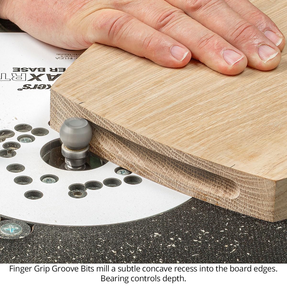 Ultra-Shear Finger Grip Groove Router Bit, 1/4 SH, 1" Boards, Template Pattern Bearing, Great for Serving & Cutting Boards, USA Made - US210FGGR