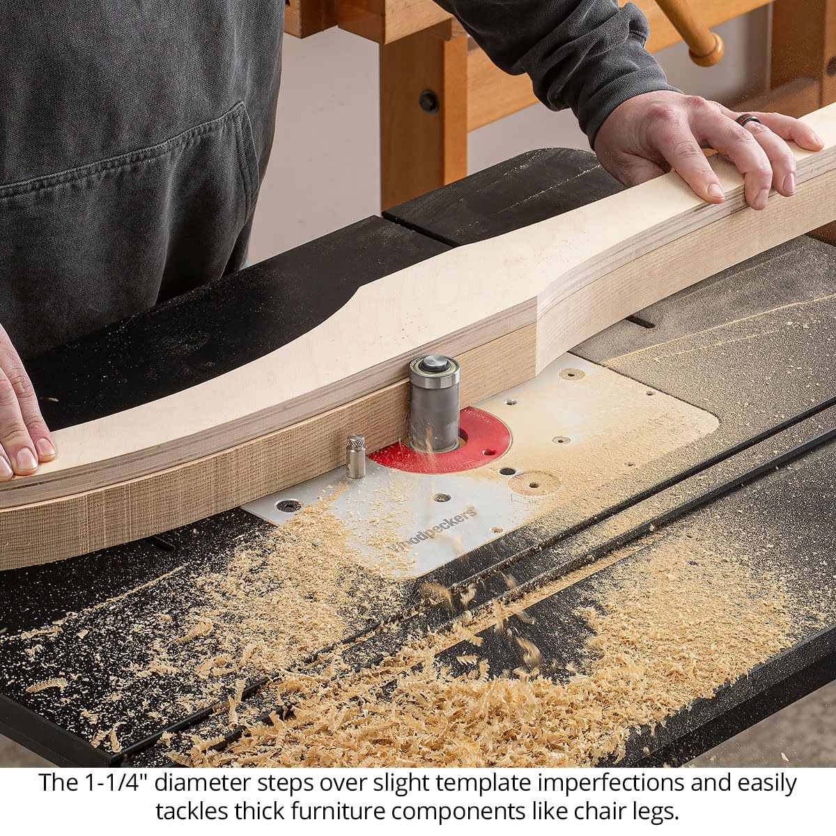- JUMBO DIAMETER FOR CLEANER PATTERN ROUTING - The extra-large 1-1/4" cutting diameter bridges small template imperfections, producing smoother edges, cleaner profiles, and less sanding compared to standard flush trim bits.